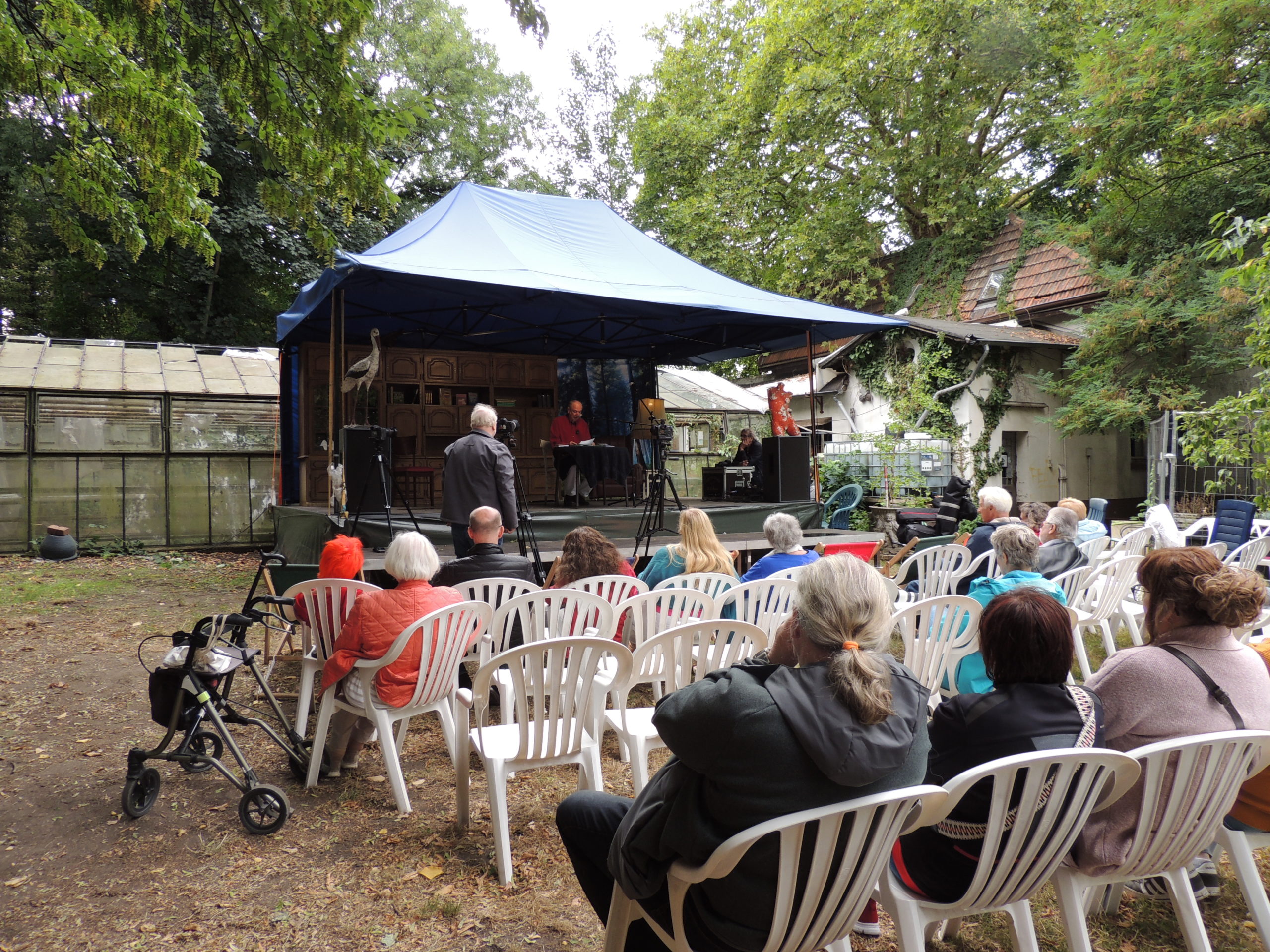 Neben der Oberbürgermeisterin, der Gelsenkirchner Komponistin Chris Seidler u.a. lasen am Samstag, den 23. August 2025 im Metropolengarten (Dahlbusch 1) auch unsere Werkstatt-Mitglieder Elke Holland und Werner Schlegel.